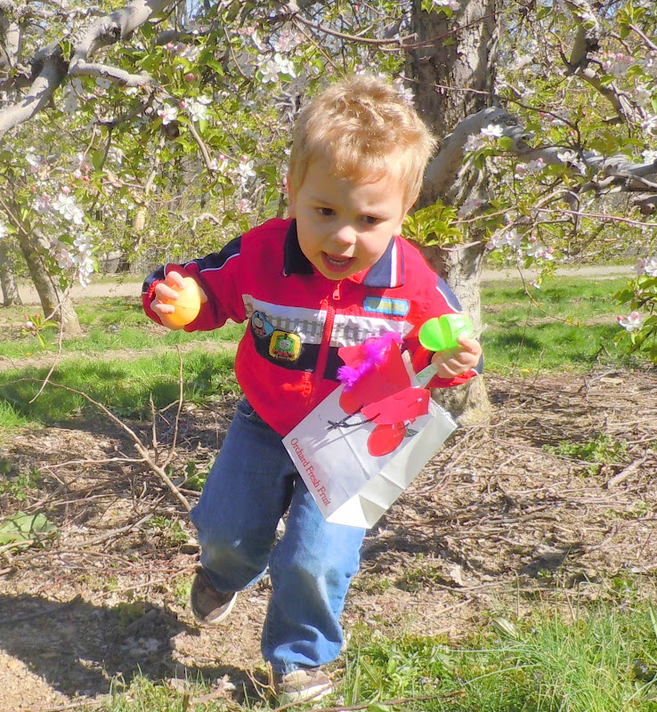 Two days before Easter, Ryan got to go on a special Easter egg hunt with his best friends. They got to go to the farm and look for eggs hidden in a flowering apple orchard.